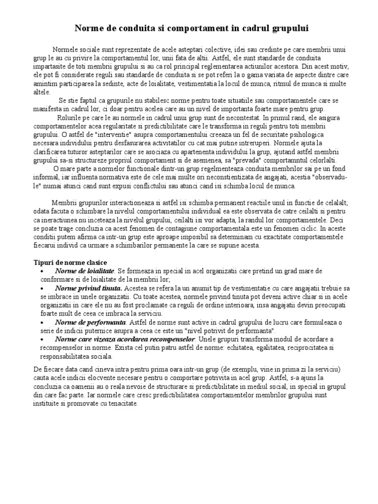 Norme De Conduita Si Comportament In Cadrul Grupului