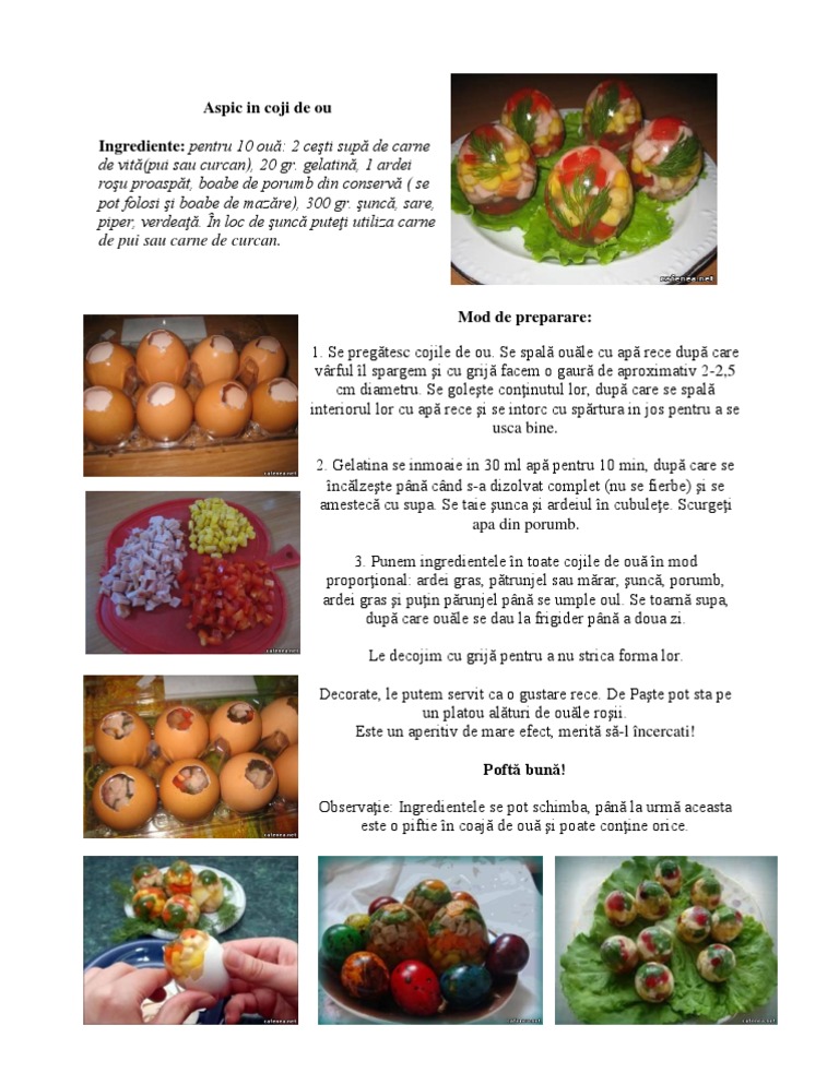 Aspic In Coji De Ou Ingrediente Pentru 10 Ouă 2 Cesti Supă De Carne