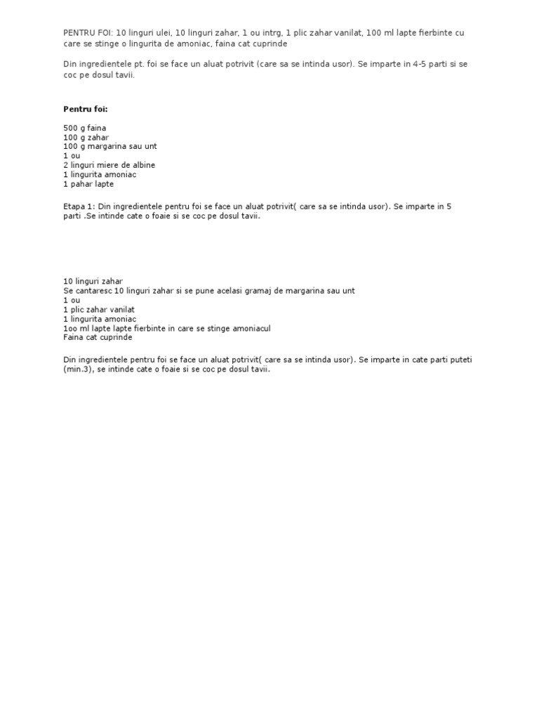 Retete De Prajituri Cu Foi Rețete Fel De Fel